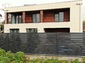 Модульный забор под «жалюзи» выглядит объемно и одновременно «легко».